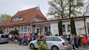 Eine Schule feiert Geburtstag und das mit vielen Gästen. Am 17. April 2025 machten sich alle Schüler*innen und das Personal der Schule auf, um dem damaligen Schulgebäude ein Geburtstagsständchen zu überbringen.