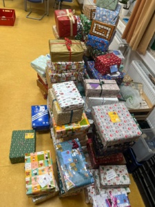 Auch in diesem Jahr haben wir uns wieder am Weihnachtspäckchenkonvoi vom Round Table beteiligt. Die ganze Schule hat fleißig Päckchen gepackt und diese in schönem Weihnachtspapier verpackt. Gesammelt wurde erstmal im Lehrerzimmer und die der Abholung war der Platz im Auto schon sehr knapp.